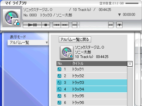 「機器・メディアに転送」ボタンをクリックするとStep-3で選択された曲が、Step-2で選択された機器に転送されます。