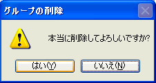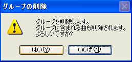 Step-3 もう一度下図の確認メッセージが表示されますので、「はい」をクリックします。 「いいえ」をクリックすると、グループの削除が解除されます。 削除されるトラックがマイ ライブラリに転送可能なトラックの場合は、パソコンに転送されます。