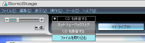 Step-2 「音楽を取り込む」ボタンの上部に配置されているドロップダウンリストから「ファイルを取り込む」を選択します。