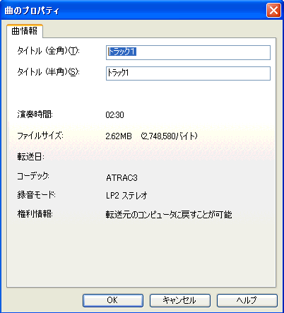 曲のプロパティ画面が起動したら、タイトル全角、タイトル半角の項目を編集します。