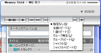 内蔵メモリ/MagicGate Memory Stickに転送されている全ての曲(パソコンに転送不可能な曲も含む)をパソコン上で再生可能です。