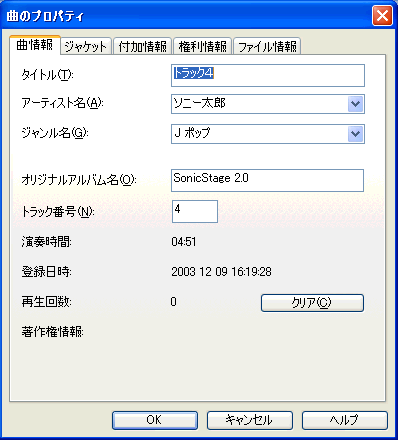 トラック番号(SonicStage Ver.2.3から編集可能です。)