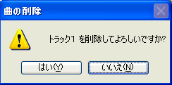 Step-2 下図のメッセージが表示されたら、「はい」をクリックします。 指定されたトラック(曲)がパソコンに転送可能な場合 Memory Stick機器上に記録されたトラックをSonicStage上で 削除しようとすると、トラックはパソコンに転送される形でメディア上から削除されます。