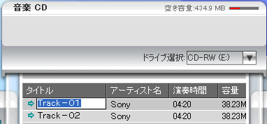 ディスクイメージ作成画面(右側の画面)からタイトルを変更したい曲を選択し、「F2」キーをクリックします。