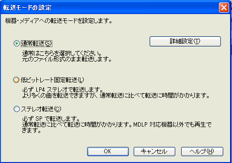 Net MD機器(Hi-MD機器のMDモード)に曲を転送時の転送モード設定 & タイトル情報の転送モード設定