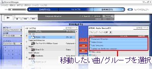 機器・メディアパネルの移動したい曲/グループを選択する ※画像はSonicStage Ver.3.4の場合