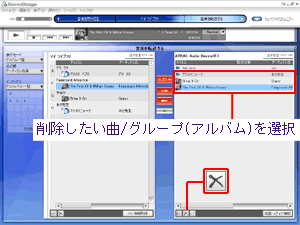 機器・メディアパネルの削除したい曲/グループ(アルバム)を選択する ※画像はSonicStage Ver.3.4の場合