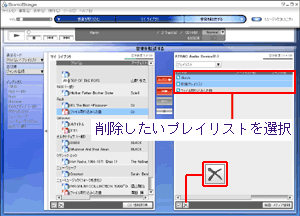 機器・メディアパネルの削除したいプレイリストを選択する ※画像はSonicStage Ver.3.4の場合
