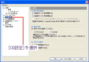 [カテゴリ]ツリーから[CD設定]を選択する ※画像はSonicStage Ver.3.4の場合