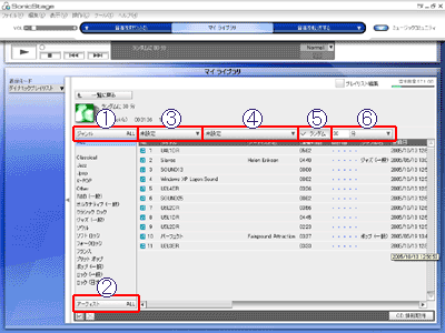 曲数、曲の再生時間、またはデータの容量を指定して、曲一覧に表示する曲を制限する。 曲一覧の上にある数値ボックスに数値を入力して、表示制限ドロップダウンリストから表示制限の単位を選択すると、その条件に合わせて表示される曲数が制限される。