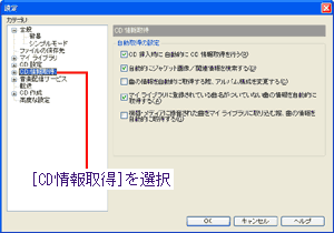 [カテゴリ]ツリーから[CD情報取得]を選択する ※画像はSonicStage Ver.3.4の場合