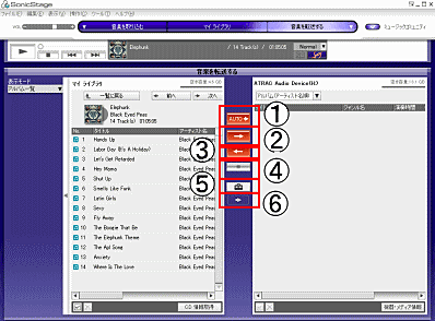 [音楽を転送する]ボタンから[ATRAC Audio Device]を選択する