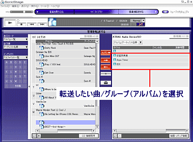[音楽を転送する]ボタンから[ATRAC Audio Device]を選択する