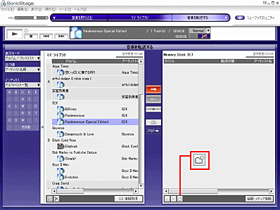 [音楽を転送する]ボタンから[ATRAC Audio Device]を選択する