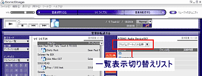 機器・メディアパネルの一覧表示切り替えリストから[プレイリスト]を選択する