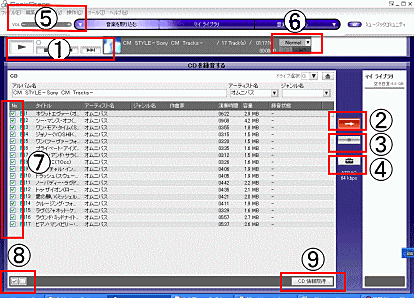 がついている音楽CDの曲を、SonicStageのマイライブラリに録音 |