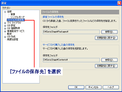 [カテゴリ]ツリーから[ファイルの保存先]を選択する