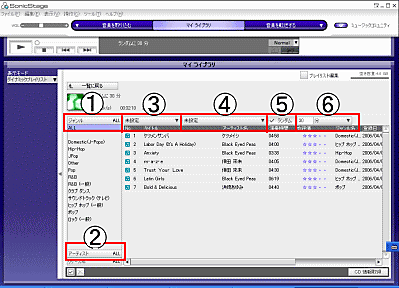 曲一覧の上にある数値ボックスに数値を入力して、表示制限ドロップダウンリストから表示制限の単位を選択すると、その条件に合わせて表示される曲数が制限される。 |