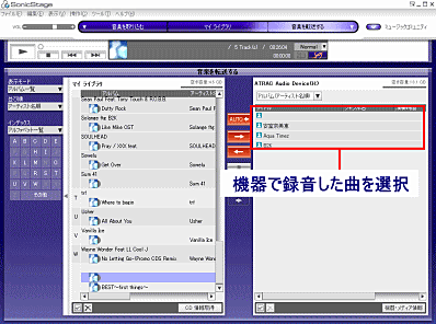 [音楽を転送する]ボタンから[Hi-MD]を選択する