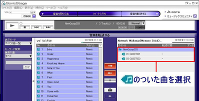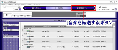 [音楽を転送する]ボタンから「Network Walkman(Internal) / Network Walkman(Memory Stick)」を選択する