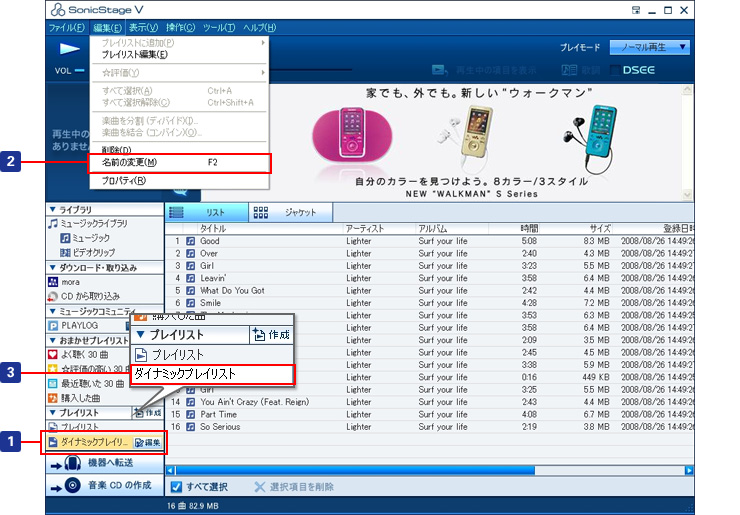 「SonicStage」では、「おまかせプレイリスト」として4つのダイナミックプレイリストが用意されています。
