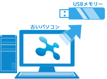 古いパソコンで「 x-アプリ バックアップツール 」を使用し、「 x-アプリ 」データを USBメモリー に保存する。