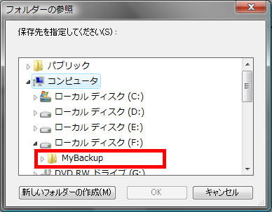 デフォルトでは、バックアップデータを作成するフォルダの名前には「 MyBackup 」という名前が付いています。