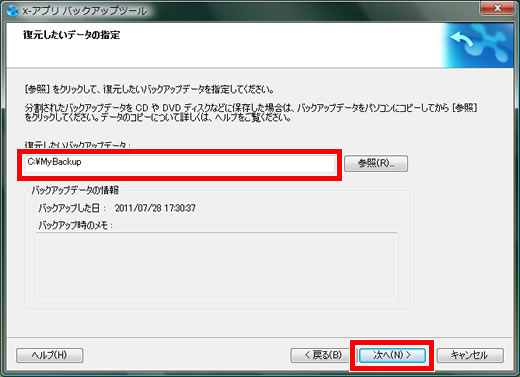 - Windows XP環境下では、バックアップデータの作成は可能ですが、バックアップデータを復元することはできません。