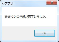 [CD 書き込み設定] 画面で [OK] をクリックするとCD作成が開始されます。