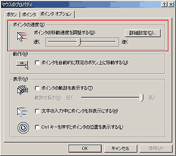 Windows Me でポインタの速度を「速く」に設定すると、正常に動作しないことがあります。