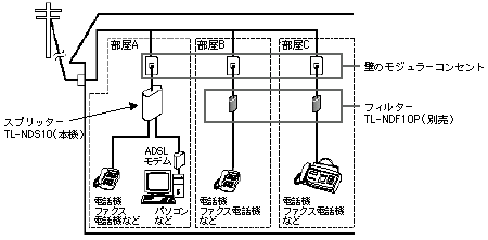 スプリッターが内蔵されていないADSLモデムをご使用の方:接続に関して