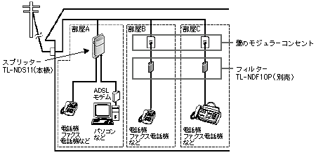 スプリッターが内蔵されていないADSLモデムをご使用の方:接続に関して