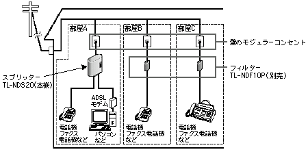 スプリッターが内蔵されていないADSLモデムをご使用の方:接続に関して