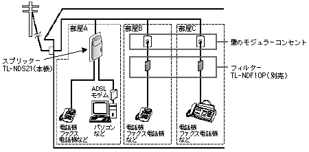 スプリッターが内蔵されていないADSLモデムをご使用の方:接続に関して