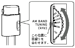 1,600kHzより高い周波数に該当するAMラジオ放送がある場合は、ダイヤルを1,600kHzに合わせてください。 |