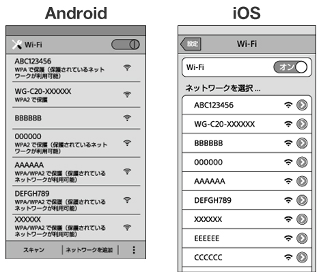③ 「WG-C20-xxxxxx」をタップしてください。
