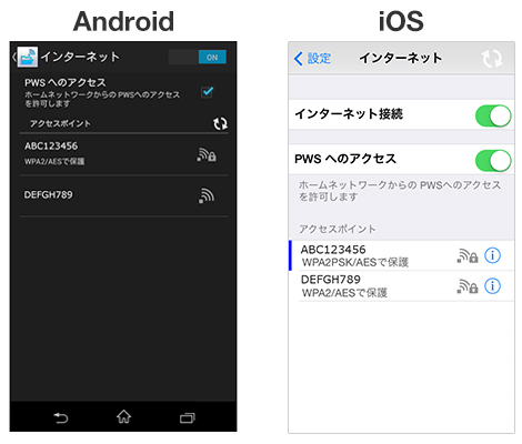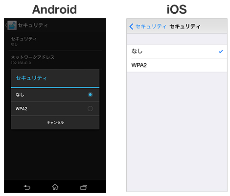 ⑥ 無線LAN接続が切断されるので、再度お使いのスマートフォン/タブレットとポータブルワイヤレスサーバーを無線LANで接続してください。