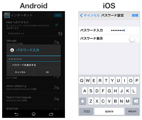 の③でパスワード入力画面が出ますので、設定したパスワードを入力してください。