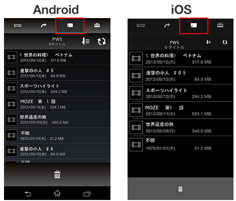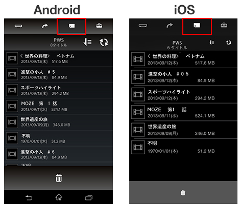 「おでかけ転送 for WG series」から呼び出し可能なDTCP-IP対応プレーヤーが、お使いのスマートフォン/タブレットにインストールされている場合は、以下の手順でビデオタイトルを再生することができます。