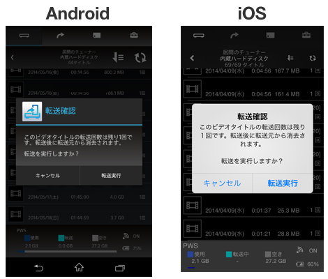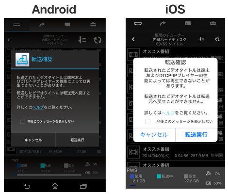 ③ 再生互換性に関する確認画面が表示されるので、内容をご確認の上「転送実行」をタップしてください。
