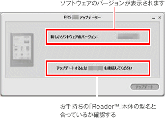 また、このソフトウェアに対応する「Reader™」本体の型名が表示されるので、お手持ちの機種の型名が表示されている事を確認してください。