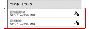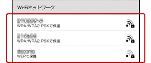 登録された無線LANルーターのネットワークSSIDが[Wi-Fi設定]画面の[Wi-Fiネットワーク]リストに表示されます。