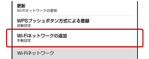 手順3 で登録された無線LANルーターのネットワークSSIDが[Wi-Fi設定]画面の[Wi-Fiネットワーク]リストに表示されます。
