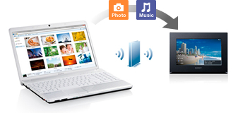 ホームネットワークに接続することで、パソコンに保存されている画像 (静止画のみ) や音楽*を、デジタルフォトフレームで楽しむことができます。