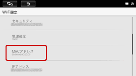 この後、パソコン側の設定時に使用します。(MACアドレスのところに表示されている、数字とアルファベットの文字の並びを、紙などに書いて、控えておいてください。)