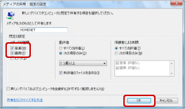 [メディアの共有]ダイアログボックスで、[メディアを共有する(S)]チェックボックスをオンにし、右下の[OK]をクリックします。