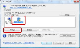 [メディアの共有:既定の設定]ダイアログボックスが表示されます。