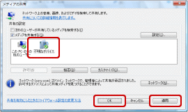 [適用]をクリックしてから、[OK]をクリックし、この[メディアの共有]ダイアログボックスを閉じます。