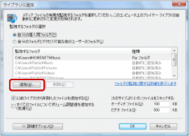 ここでは、自動的に検索されないフォルダー内にある、画像(静止画)や音楽を、自動的に検索、監視し、ライブラリに追加する設定方法を説明します。