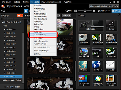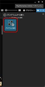 PlayMemories Homeの画面上部にある[ツール]-[プログラムから開く]、または右側にあるメニューの[プログラムから開く]をクリックします。